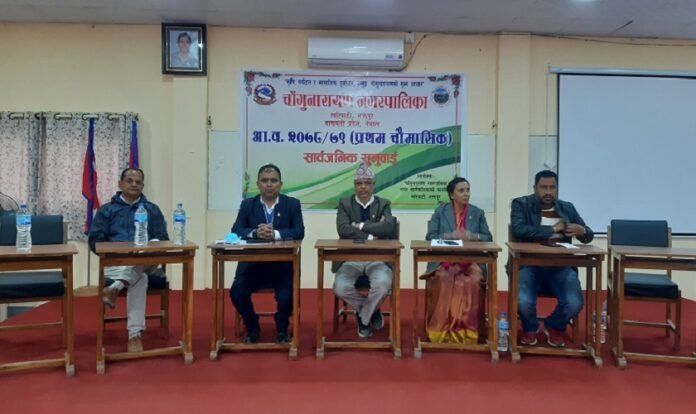 भक्तपुर । चाँगुनारायण नगरपालिकाले सार्वजनिक सुनुवाई आयोजना गरेको छ । बिहीबार नगरपालिकाले आयोजनामा कार्यक्रममा राजनीति दलको तर्फबाट नेकपा एमालेका चाँगुनारायण नगर कमिटीका उपाध्यक्ष जयराम बास्तोलाले नगरक्षेत्र भित्रका इँटा भट्टा व्यवस्थापनमा ध्यान दिनुपर्ने बताए । बास्तोलाले भने, ‘सकिन्छ इँटाभट्टा व्यवस्थापन गरौं, सकिँदैन जनतालाई रोगी बनाउने भट्टा बन्द गरौं ।’सार्वजनिक सुनुवाईमा वडा नम्बर ३ का स्थानीय तथा एमालेका वडा कमिटीका अध्यक्ष विष्णुप्रसाद न्यौपाने भने, ‘नगरपालिकाले आयोजना गरेको यो कार्यक्रममा को छ यहाँ सर्वसाधारण रु ।’ नगरपालिकाको विभिन्न शाखाका प्रमुख, शिक्षक, सुरक्षाकर्मी, सञ्चारकर्मी मात्रै उपस्थित हुनु सकारात्मक नभएको न्यौपानेको भनाइ छ ।
