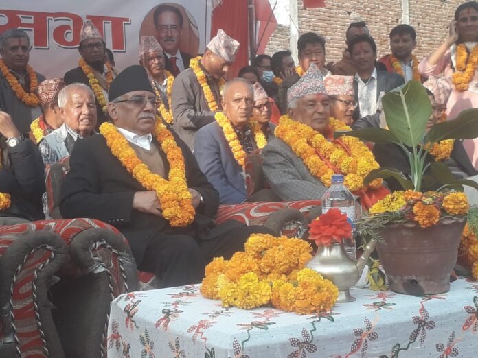 २८ कार्तिक, डुम्रे । नेकपा (माओवादी केन्द्र) का अध्यक्ष पुष्पकमल दाहाल ‘प्रचण्ड’ ले नेपाली कांग्रेसका वरिष्ठ नेता रामचन्द्र पौडेललाई अत्याधिक मतले विजयी गराउन तनहुँवासीलाई आग्रह गरेका छन् । बन्दीपुर गाउँपालिका–१ डुम्रेमा सोमवार आयोजित सत्तागठबन्धनको कोणसभालाई सम्बोधन गर्दै अध्यक्ष दाहालले पौडेललाई धेरै मत दिएर जिताए मुलुकको कार्यकारी पदमा पु¥याउने वताए । ‘रामचन्द्रजीलाई धेरै मत दिएर जिताउनुस्, कार्यकारी पदमा पु¥याउने जिम्मा हामी लिन्छौं’, दाहालले भने । उनले गठवन्धनका खम्बा वरिष्ठ नेता पौडेललाई जिताएर पठाए प्रधानमन्त्री बनाउने संकेत थियो । उनले आर्थिक समृद्धिको नयाँ यात्रा सुरु गर्ने लक्ष्यमा वर्तमान गठबन्धन रहेको स्पष्ट पारे । अध्यक्ष दाहालले नेपाललाई नयाँ युगमा लैजाने सङ्कल्पसहित गठबन्धन निर्माण भएको वताए ।