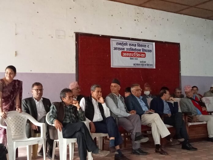 नेपाली कांग्रेसप्रति शुभेच्छा र सदीक्षा प्रकट गर्ने बुद्धिजिवीहरुको शनिवार दमौलीमा भेला तथा अन्तक्र्रिया सम्पन्न भएको छ । तनहुँ मूलथलो भएका तथा जिल्लामा क्रियाशिल बुद्धिजिवीहरुको भेलाले तनहुँको विकासे मार्गचित्रका लागि कांग्रेस उम्मेदवार गोविन्द भट्टराईका पक्षमा समर्थन जनाउने निर्णय गरेको छ । तनहुँ उद्योग वाणिज्य संघको हलमा सम्पन्न भेलामा सहभागीले तनहुँको स्थानीय विकास नै यहाँका नागरिकको प्राथमिकता भएको भन्दै त्यसलाई अघि बढाउन भट्टराई नै सक्षम पात्र भएको बताए । निष्ठाको राजनीति गरेका र पदमै नरहेर पनि भट्टराईले तनहुँको खानेपानी, विद्युत र बाटोघाटो लगायतका विकास निर्माणमा योगदान दिएको भन्दै उनैलाई जिताउनु पर्नेमा सहभागिहरुको जोड थियो ।