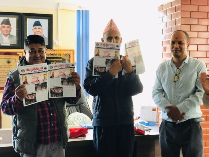 विपद् बुलेटिनको विमोचन चाँगुनारायण नगरपालिकाका नगर उपप्रमुख श्री रमेश बुढाथोकी तथा प्रमुख प्रशासकीय अधिकृत श्री शिवप्रसाद हुमेगाइँले संयुक्त रुपमा गर्नुभएको थियो ।