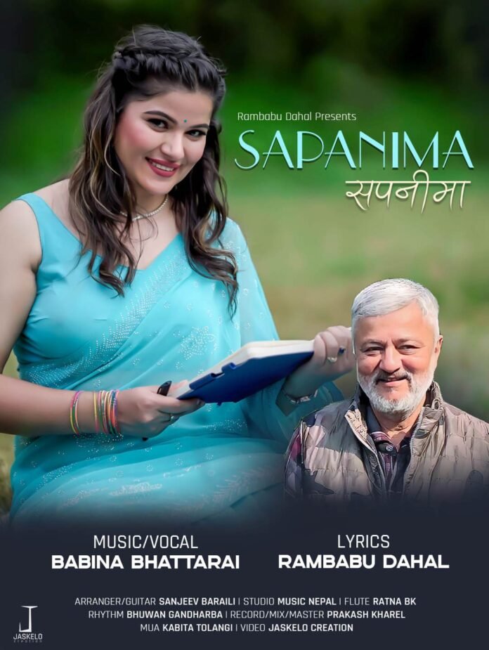 कवि एवं साहित्यकार रामबाबु दाहालको शब्द रचना रहेको यस्तै प्रेमिल भावको गीत ‘सपनीमा’ पछिल्लो समय विभिन्न सुमधुर गीत, गजल, भजन सहित पहिलो नेपाली ‘चारु’ गाएर नेपाली सुगम संगीतमा छाइरहेकी चर्चित गायिका बबिना भट्टराईको स्वर तथा संगीतमा सार्वजनिक भएको छ ।बबिना भट्टराईको अफिसियल युटुव च्यानल मार्फत सार्वजनिक गरिएको उक्त म्युजिक भिडियो मा बबिना आफै फिचर्ड छिन् । गीतको एरेन्ज संजिव बराइलीले गरेका छन्, गीतमा सारङ्गीको धुन पनि उनैले भरेका छन् भने तवला भुवन गन्धर्वले बजाएका छन् । म्युजिक नेपालको स्टुडियोमा रेकर्ड गरिएको उक्त गीतको रेकर्ड, मिक्सिङ र मास्टरिङ प्रकाश खरेलको रहेको छ । गीतको भिडियो जस्केलो क्रियशनद्धारा निर्माण गरिएको हो ।