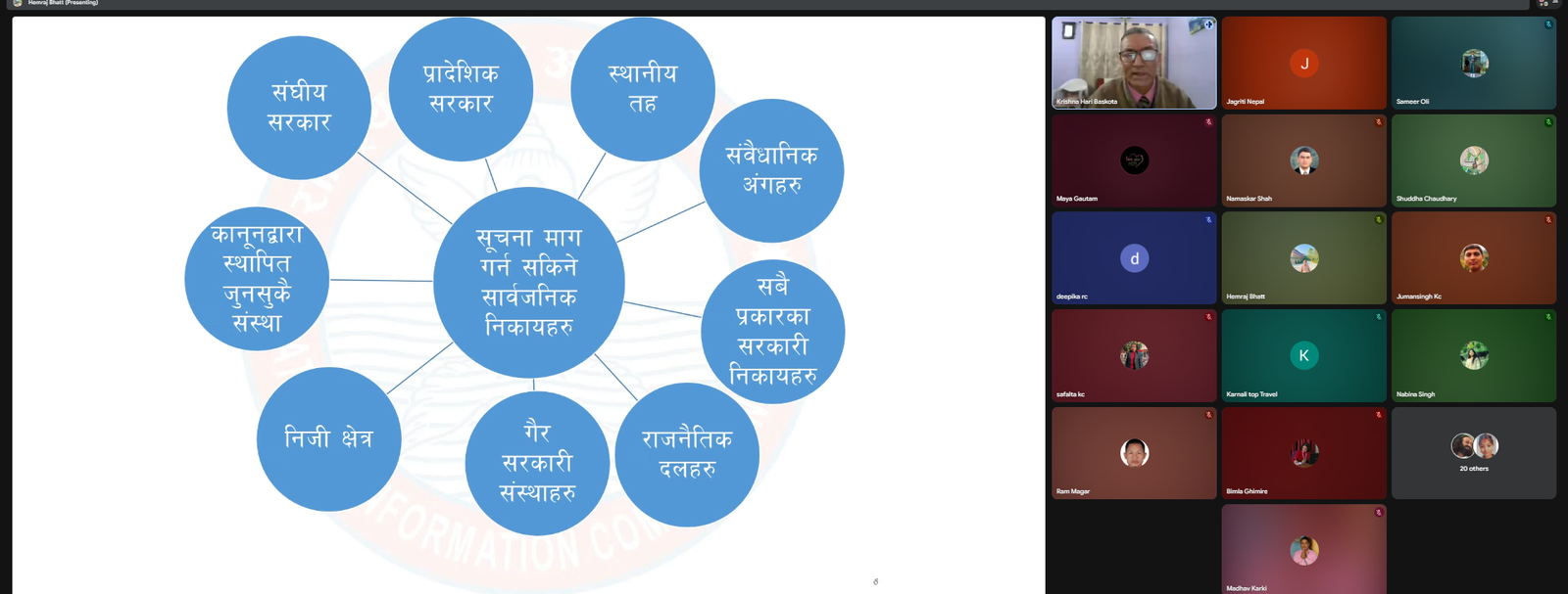 तालिममा प्रशिक्षण दिँदै पूर्व प्रमुख सूचना आयुक्त बास्कोटाले सूचनाको हक लोकतन्त्रको ‘बायुप्राण’ भएको उल्लेख गर्दै सूचनाको हकको प्रवर्द्धन र प्रभावकारी प्रचलनले मुलुकमा सुशासन बहाली गर्न महत्वपूर्ण योगदान पुग्ने बताउनुभयो।