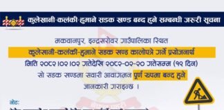 कुलेखानी-कलंकी-हुमाने सडक पूर्णरूपमा बन्द
